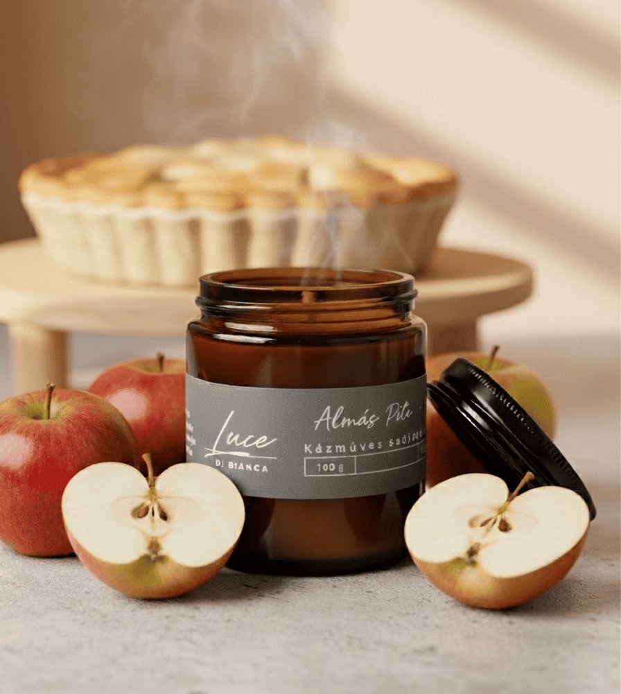Kézműves szójagyertya sült alma, fahéj és karamellizált cukor illatjegyekkel. Édes, cukros, almás illat, amely tökéletesen megidézi az otthonos, meleg hangulatot.