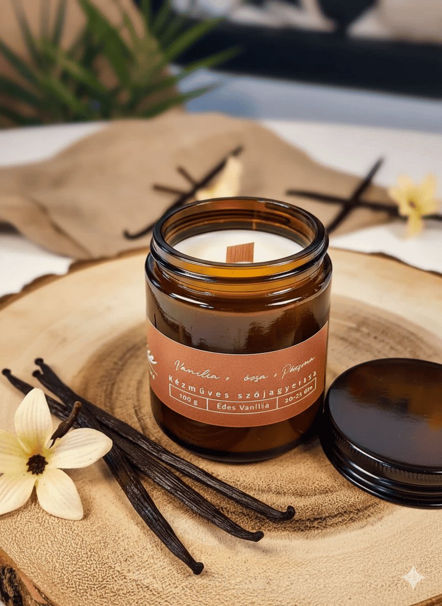 Kézzel Öntött Szójaviasz Illatgyertya – 100% Tisztaságú, Vegán és Természetes