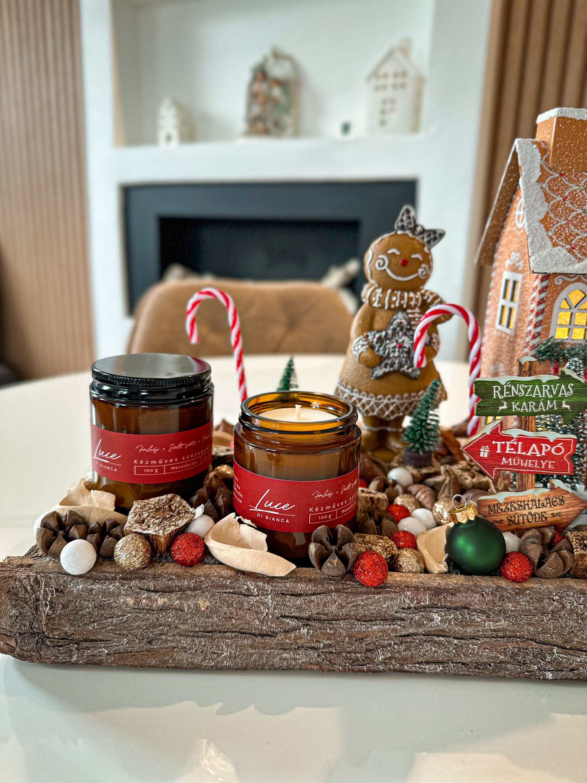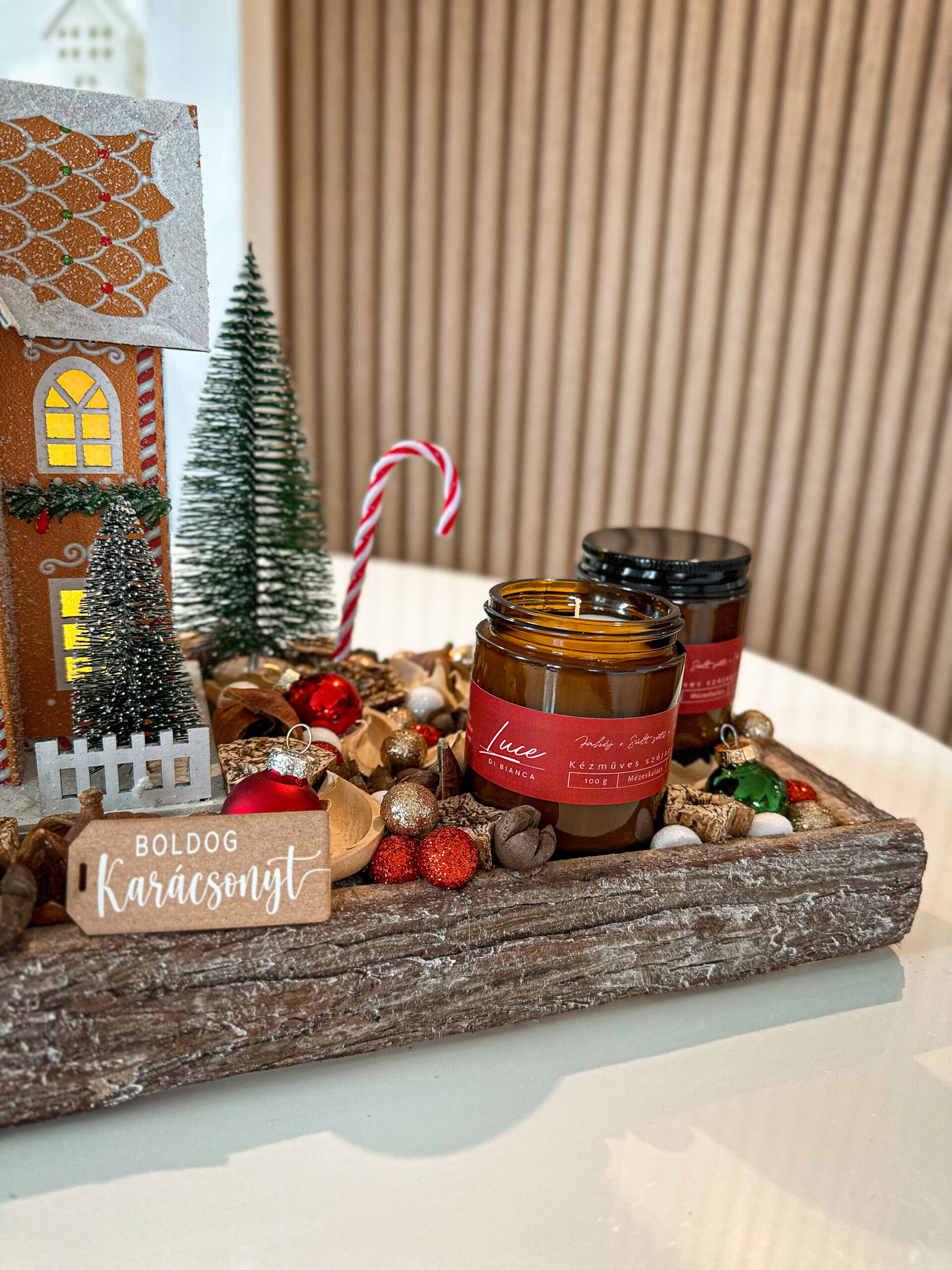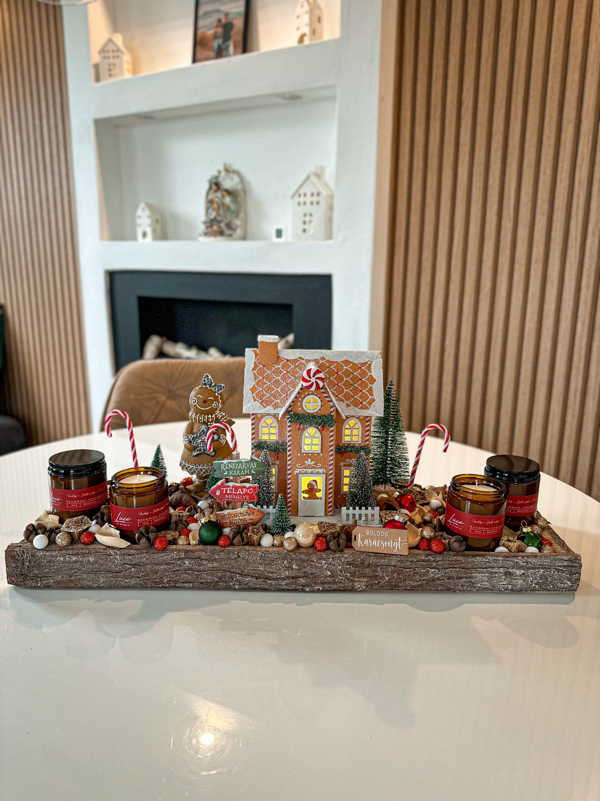 „Mézeskalács Álom” 2 az 1-ben Kézműves Adventi Tál 4 Szójaviasz Illatgyertyával