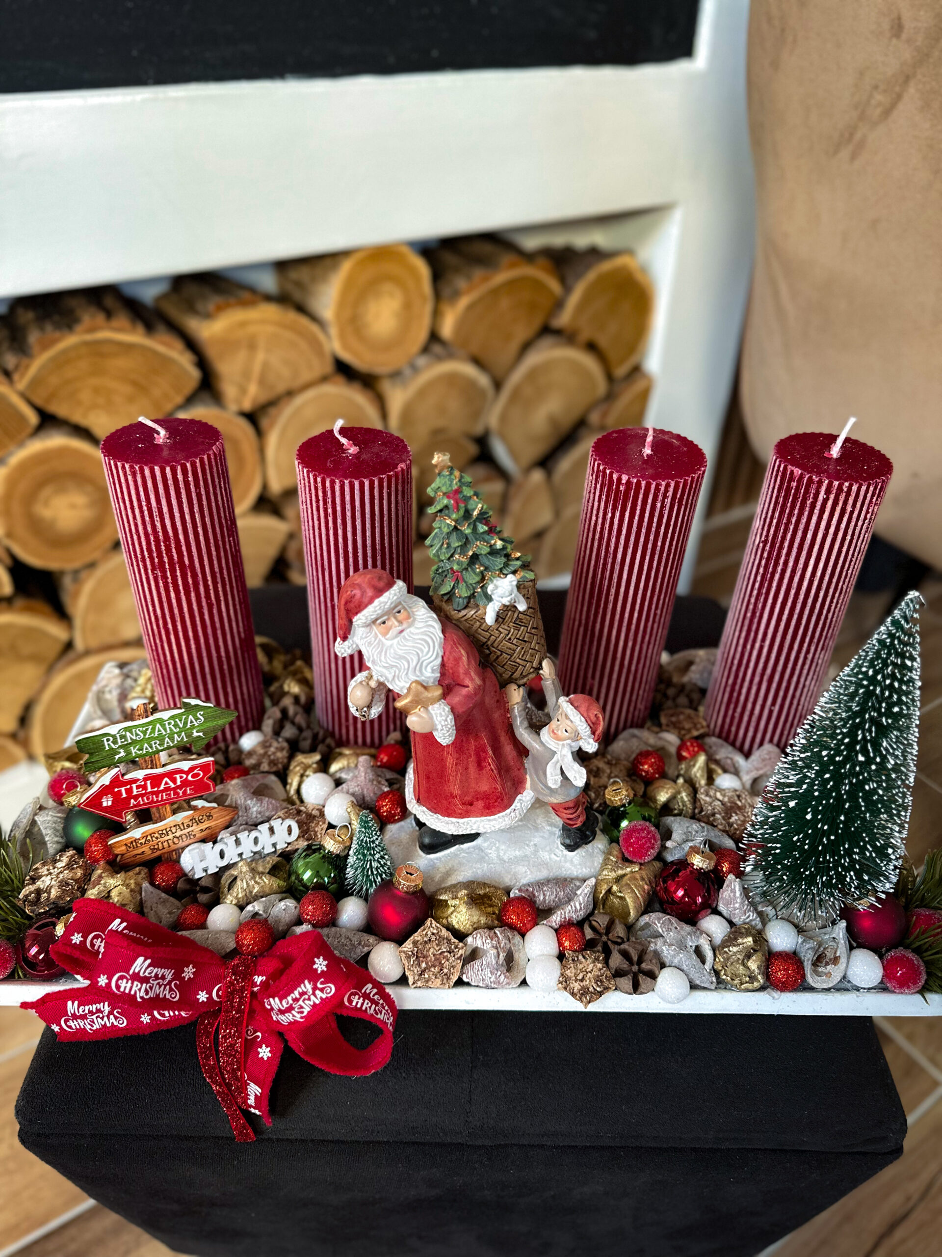 „Télapó Műhelye” – Klasszikus Adventi Asztaldísz Tálcán